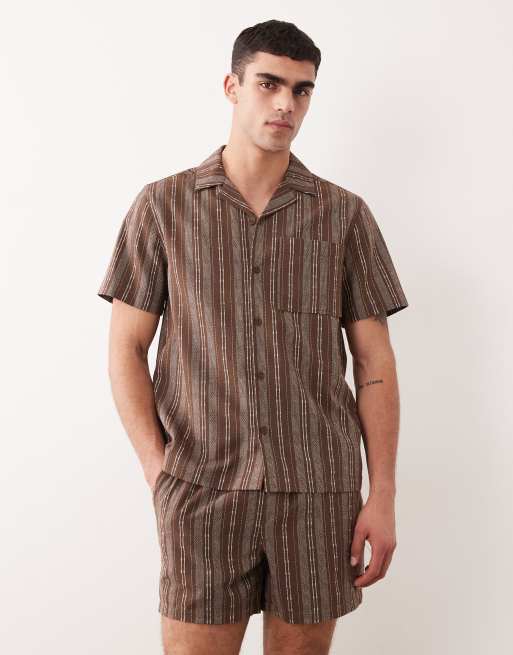 ASOS DESIGN - Ensemble short et chemise à rayures - Marron