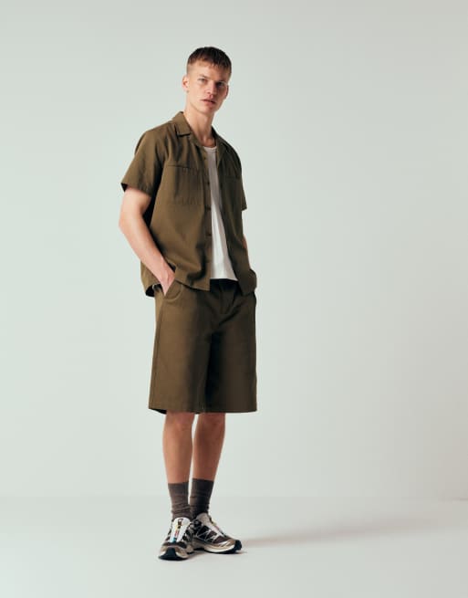 ASOS DESIGN - Ensemble short et chemise - Kaki