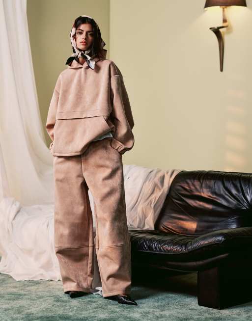 ASOS DESIGN - Ensemble sweat à capuche et pantalon de jogging en néoprène brillant - Beige