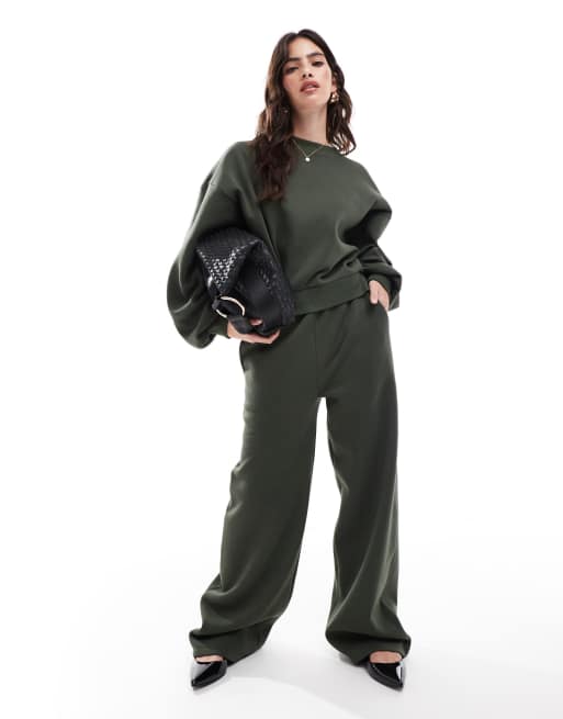 ASOS DESIGN - Ensemble sweat à manches bouffantes et pantalon de jogging - Vert