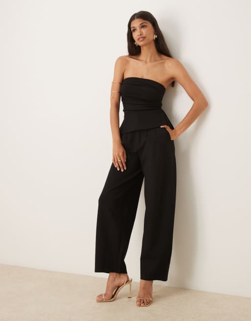 ASOS DESIGN - Ensemble top bandeau plissé et pantalon large en maille point de Rome - Noir