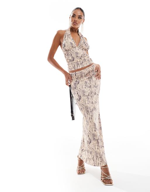 ASOS DESIGN - Ensemble top dos nu imprimé à volants - Naturel