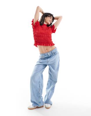 ASOS DESIGN - Ensemble top et short style bloomer à fronces - Rouge