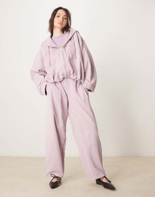 ASOS DESIGN - Ensemble zippé à ourlet bouffant - Mauve délavé