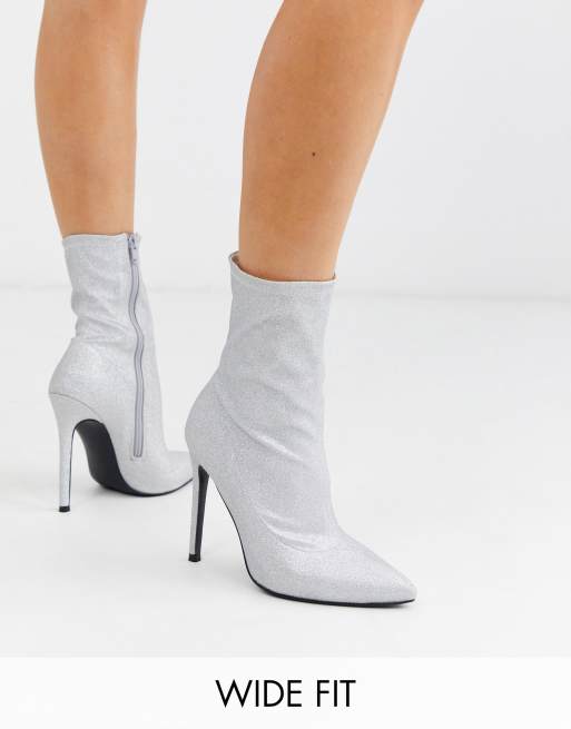 ASOS DESIGN - Esmerelda - Bottines souples pointure large à talon haut - Éclat argent