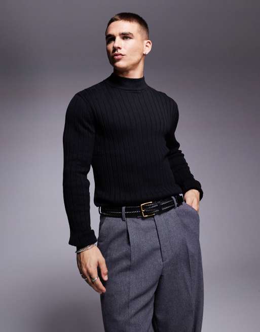 ASOS DESIGN - Essential - Pull col roulé moulant en maille côtelée - Noir
