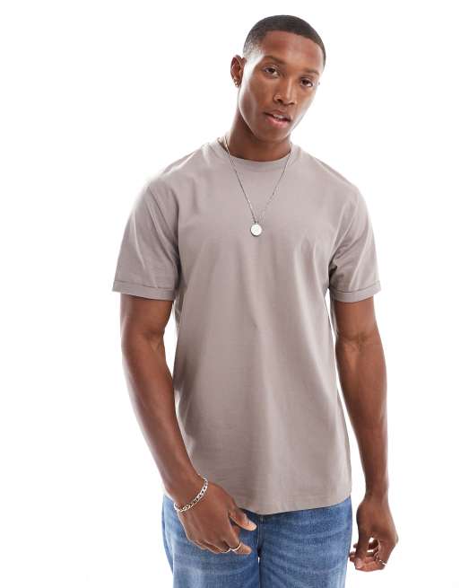 ASOS DESIGN - Essential - T-shirt ras de cou à manches retroussées - Marron