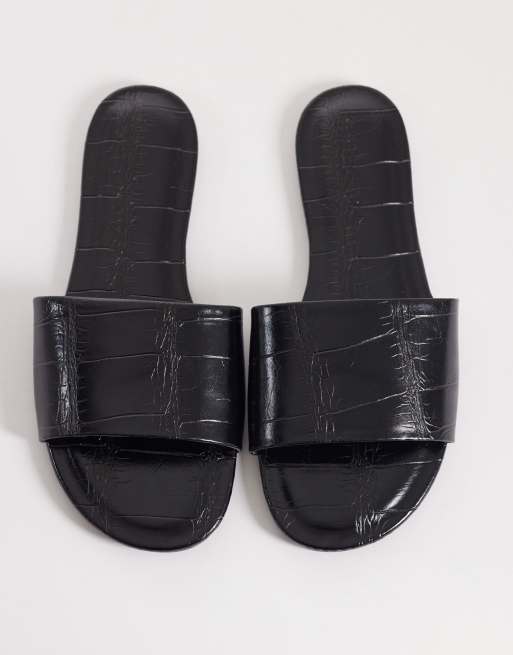 ASOS DESIGN - Faith - Sandales plates effet croco - Noir