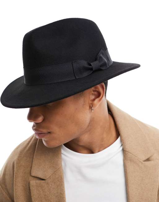 ASOS DESIGN - Fedora en laine ajustable - Noir
