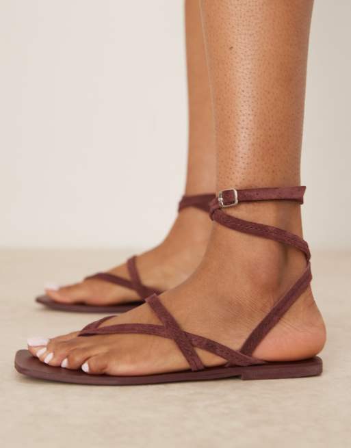 ASOS DESIGN - Fiction - Sandales en daim à lanières - Bordeaux