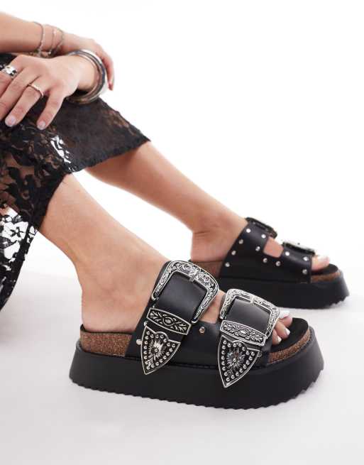 ASOS DESIGN - First-class - Sandales à semelle intérieure moulée et double bride style western - Noir