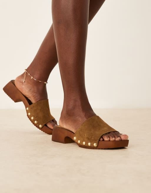 ASOS DESIGN - Flare - Sabots style mules en daim de qualité supérieure - Kaki