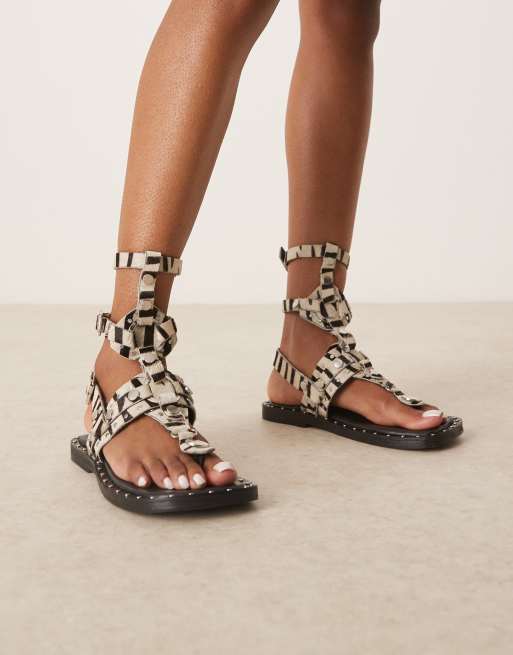 ASOS DESIGN - Fort - Sandales style spartiates en cuir - Zébrures effet poils