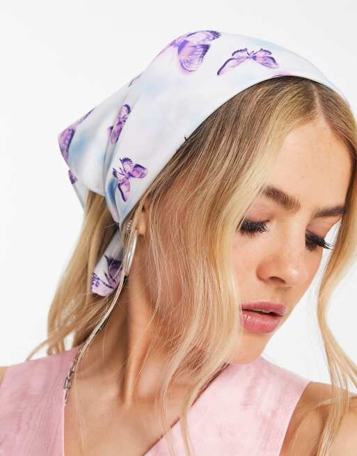 ASOS DESIGN - Foulard en polysatin à imprimé papillons - Violet - PURPLE