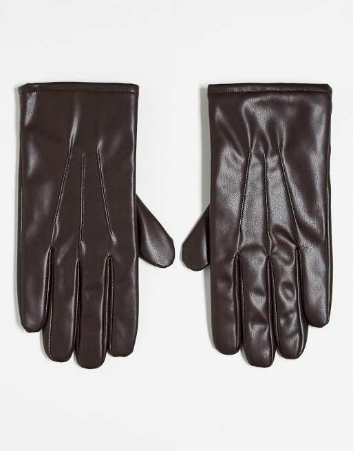 ASOS DESIGN - Gants imitation cuir - Marron chocolat