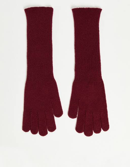 ASOS DESIGN - Gants longs en maille - Bordeaux