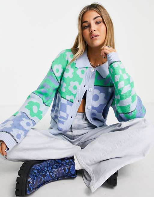 ASOS DESIGN - Gilet à col fantaisie et motif fleurs et carreaux - Bleu