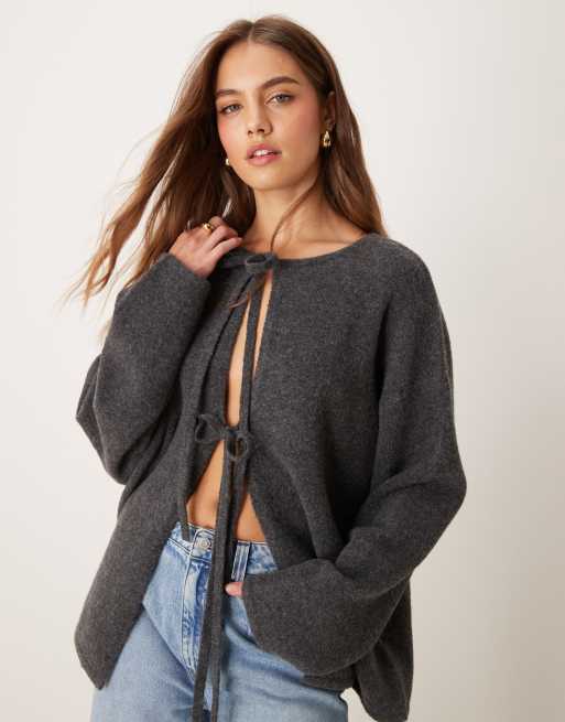 ASOS DESIGN - Gilet avec nœuds sur l'avant - Anthracite