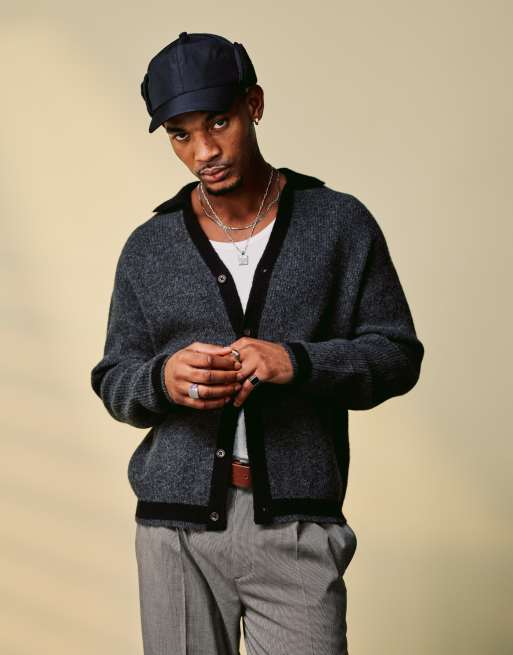 ASOS DESIGN - Gilet boutonné décontracté en maille à coutures contrastantes - Anthracite