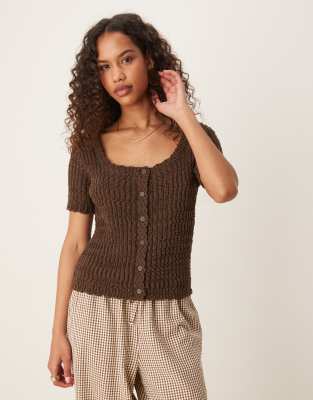 ASOS DESIGN - Gilet boutonné en maille texturée à encolure dégagée - Chocolat