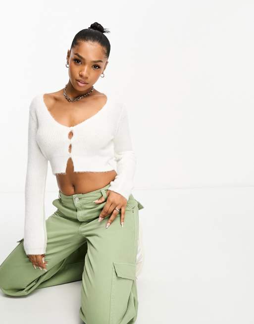 ASOS DESIGN - Gilet court en maille duveteuse - Crème