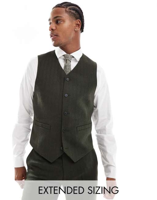 ASOS DESIGN - Gilet de costume ajusté en laine mélangée à chevrons - Vert olive