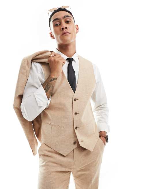 ASOS DESIGN - Gilet de costume ajusté en lin mélangé à chevrons - Taupe