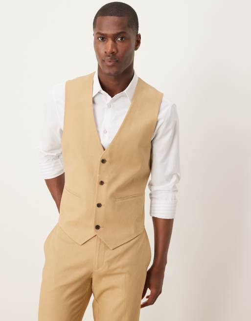 ASOS DESIGN - Gilet de costume ajusté en lin mélangé - Beige