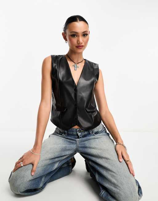 ASOS DESIGN - Gilet de costume coupe carrée en similicuir - Noir