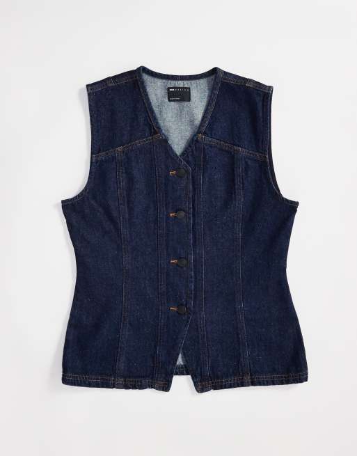 ASOS DESIGN - Gilet de costume cousu en jean - Indigo