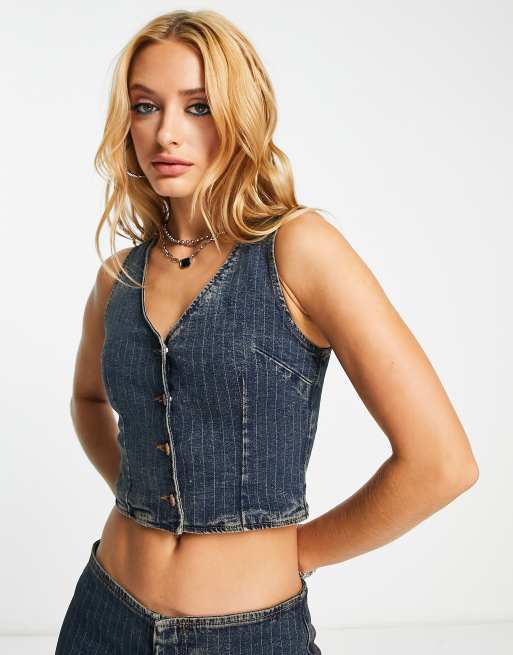 ASOS DESIGN - Gilet de costume d'ensemble en jean à fines rayures - Bleu