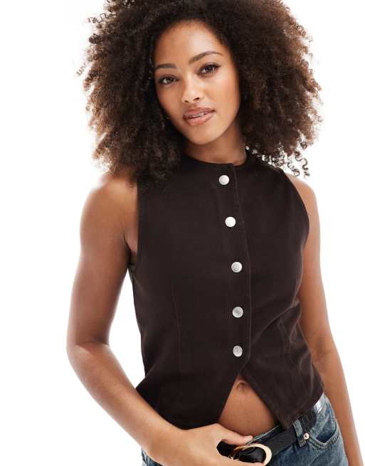 ASOS DESIGN - Gilet de costume en jean - Chocolat