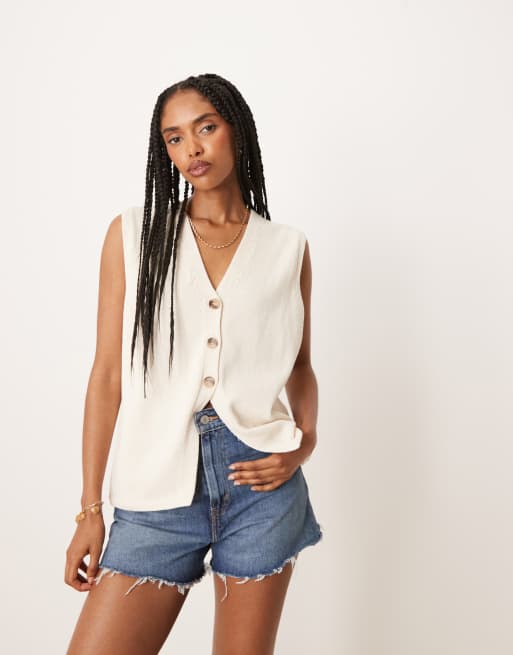 ASOS DESIGN - Gilet de costume épuré en maille coupe décontractée - Crème