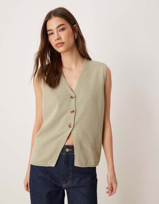 ASOS DESIGN - Gilet de costume épuré en maille coupe décontractée - Kaki