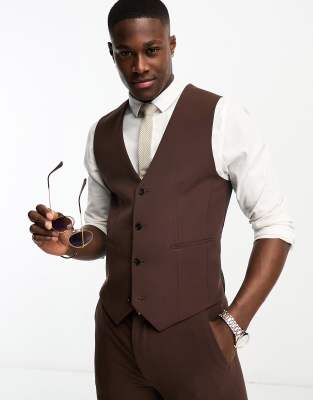 ASOS DESIGN - Gilet de costume ultra ajusté - Chocolat
