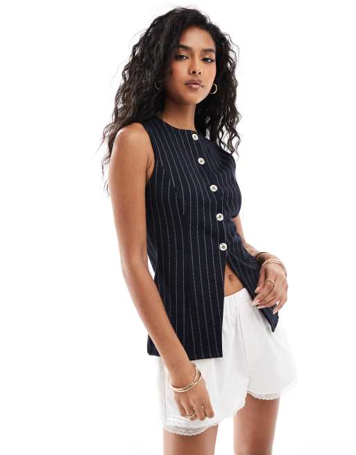 ASOS DESIGN - Gilet de tailleur long d'ensemble en jersey à rayures fines - Bleu marine