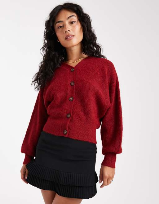 ASOS DESIGN - Gilet en maille duveteuse à manches chauve-souris - Bordeaux