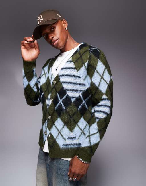 ASOS DESIGN - Gilet en maille duveteuse à motif losanges - Bleu