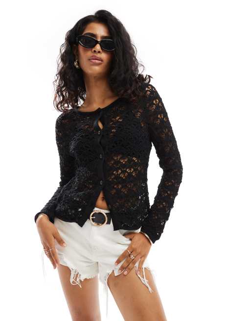 ASOS DESIGN - Gilet en maille pointelle - Noir