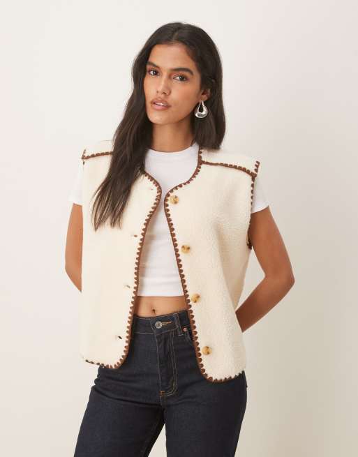 ASOS DESIGN - Gilet en polaire imitation peau de mouton avec point de couverture - Crème et marron