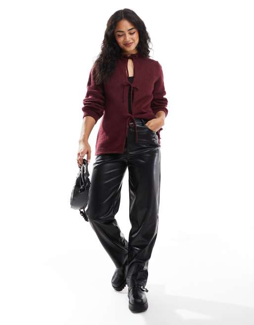ASOS DESIGN - Gilet oversize en maille avec liens sur le devant - Bordeaux