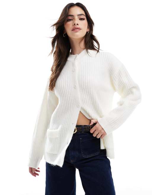 ASOS DESIGN - Gilet oversize en maille avec poches - Crème