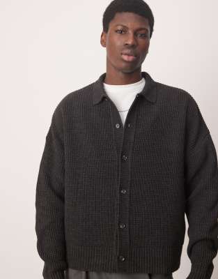 ASOS DESIGN - Gilet oversize en maille coupe carrée avec col côtelé - Anthracite chiné