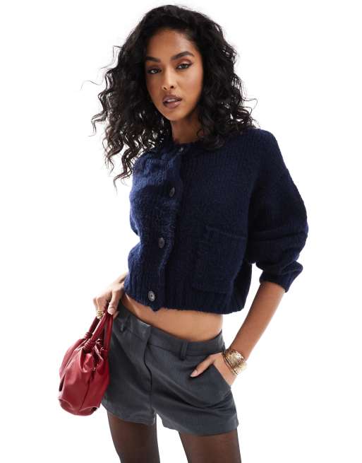 ASOS DESIGN - Gilet ras de cou en maille ample avec poche - Bleu marine