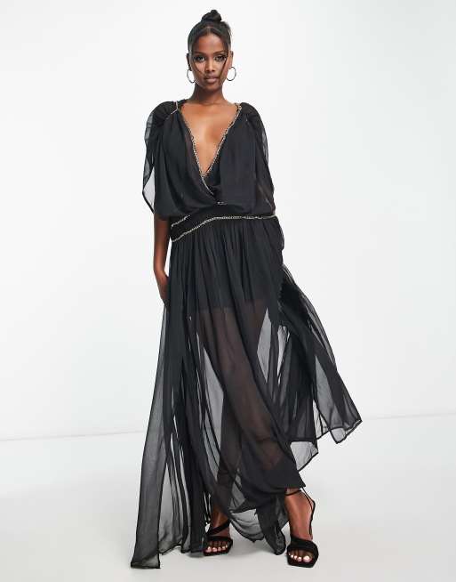 ASOS DESIGN - Goddess - Robe longue à détail chaîne - Noir