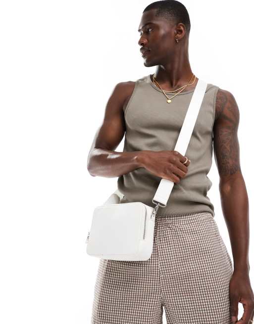 ASOS DESIGN - Grand sac bandoulière rigide en similicuir - Blanc