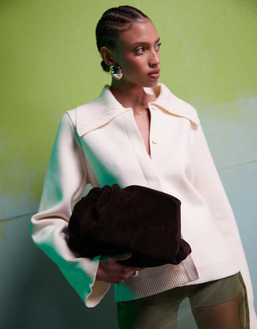 ASOS DESIGN - Grande pochette souple en daim de qualité supérieure - Chocolat