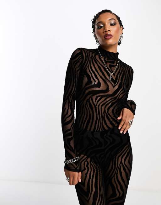 ASOS DESIGN - Halloween - Body à manches longues d'ensemble en tissu dévoré à imprimé animal