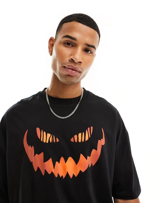 ASOS DESIGN - Halloween - T-shirt oversize avec imprimé visage en citrouille - Noir