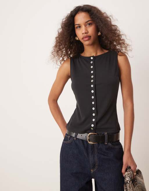 ASOS DESIGN - Haut boutonné sans manches en modal - Noir
